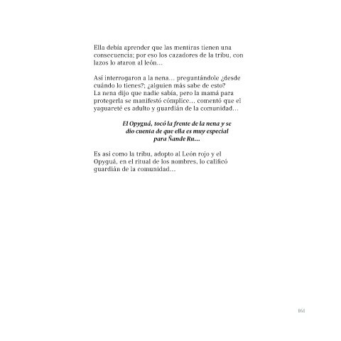 busca de alimento, y si bien los tigres son sabios, son Opyguá, en el ritual de los nombres, lo calificó