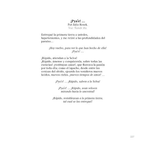 Sé preguntar por la Selva, y él, responde: ¡Pya’e! … mirando hacia lo ancestral!