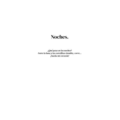 . Noches. ¿Qué pasa en las noches? Entre la luna y las estrellitas tiembla, corre… ¡Sueña mi corazón!