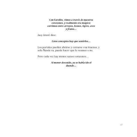 –¿Puedes contarnos como se llega a la Tierra Sin Mal? corrimos entre arroyos, leones, tigres, aves