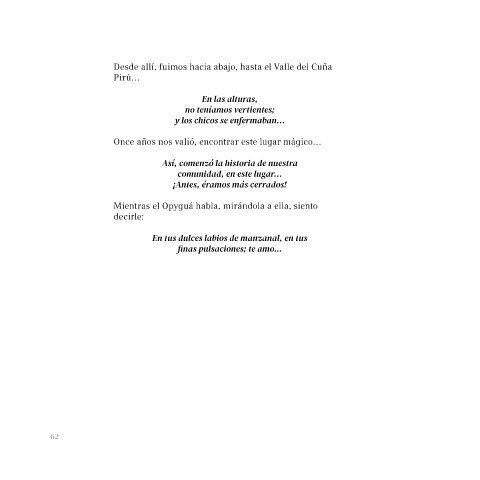 Mientras el Opyguá habla, mirándola a ella, siento Canta cuando hay paz en la noche…