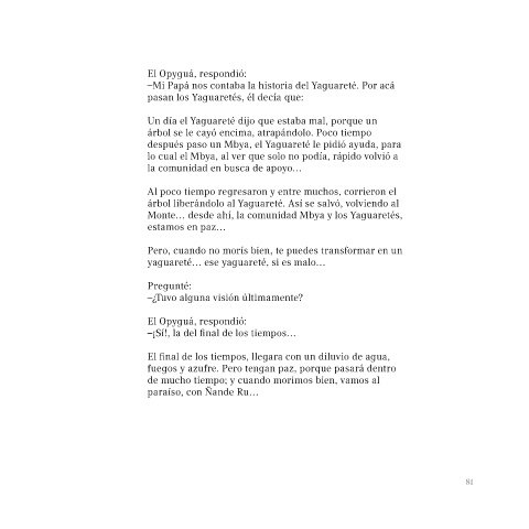 Ñande Ru, que se comunica conmigo, para obtener Monte… desde ahí, la comunidad Mbya y los Yaguaretés,