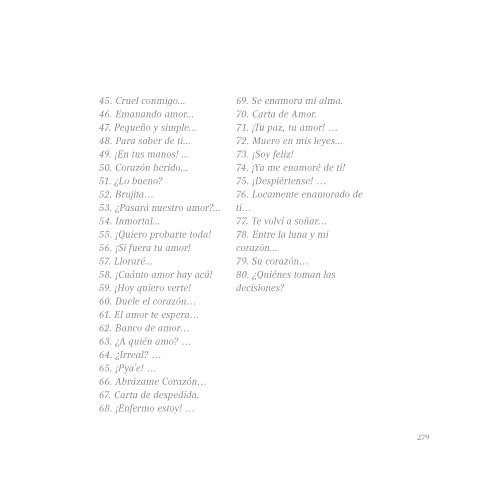 45. Cruel conmigo... 69. Se enamora mi alma.
